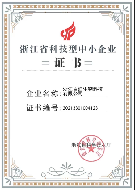 浙江省科技型中小企业证书