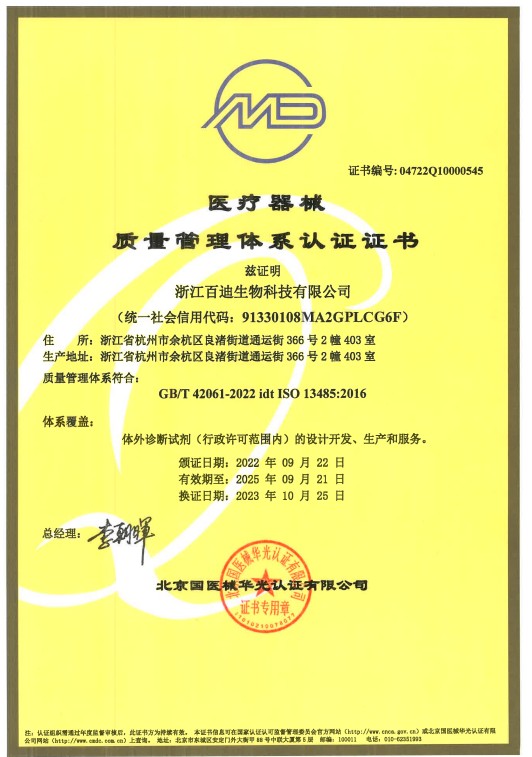 医疗器械质量管理体系认证证书