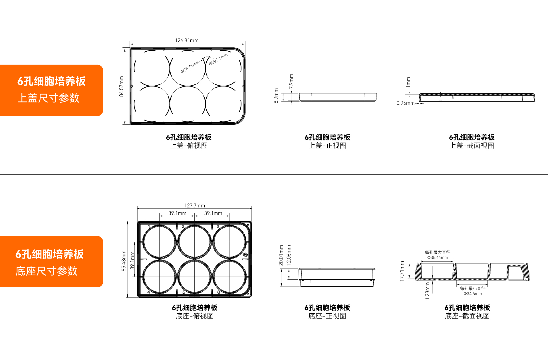 单孔培养面积 (cm²):9.5 ~ 9.6; 单孔建议工作容积 (mL):2.0 ~ 3.0