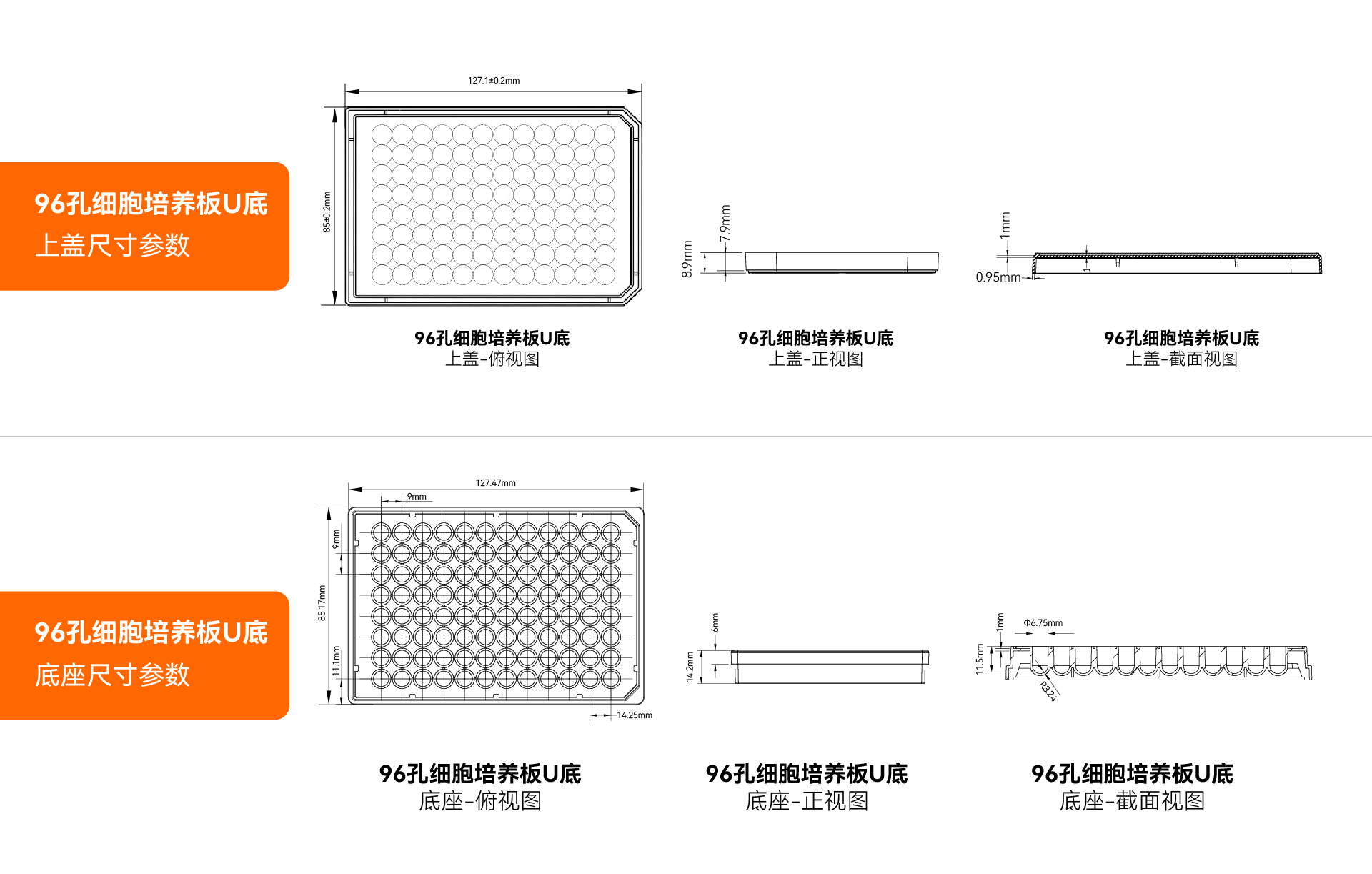 单孔培养面积 (cm²):N/A ; 单孔建议工作容积 (mL):0.075 ~ 0.2