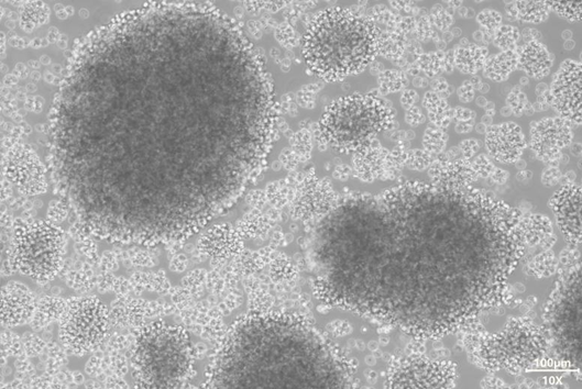 NK-92(Natural killer-92 cells)是一种永生化的自然杀伤细胞,最初是从一位50岁男性患者的外周血中分离而来,他患有急性非霍奇金淋巴瘤—一种起源于淋巴组织的恶性肿瘤,由发现该疾病的医师“托马斯·霍奇金”的姓氏命名。细胞悬浮生长,呈现聚团状。